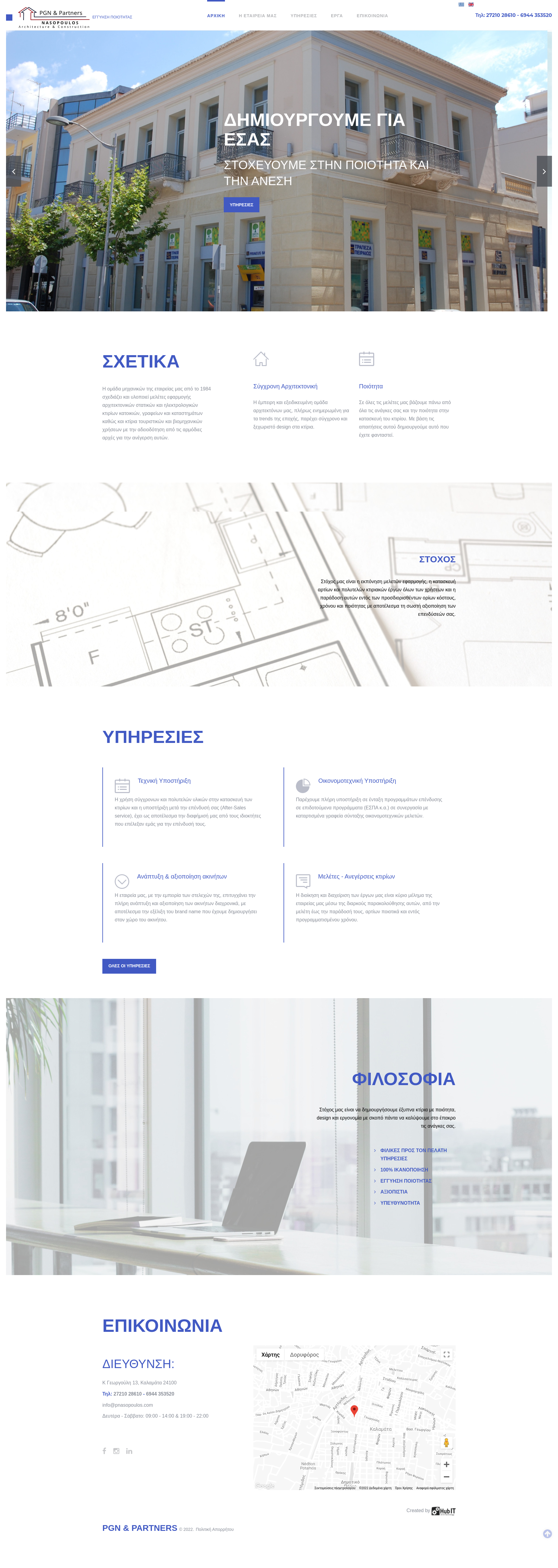Το τεχνικό γραφείο του πολιτικού μηχανικού Παναγιώτη Νασόπουλου έχει την έδρα του στην Καλαμάτα με δυνατότητα όμως ανάληψης εργασιών και εκτός της περιοχής. Ο σχεδιασμός και η ανάπτυξη της ιστοσελίδας έγιναν με γνώμονα την προώθηση των έργων του σε Ελλάδα και εξωτερικό.
